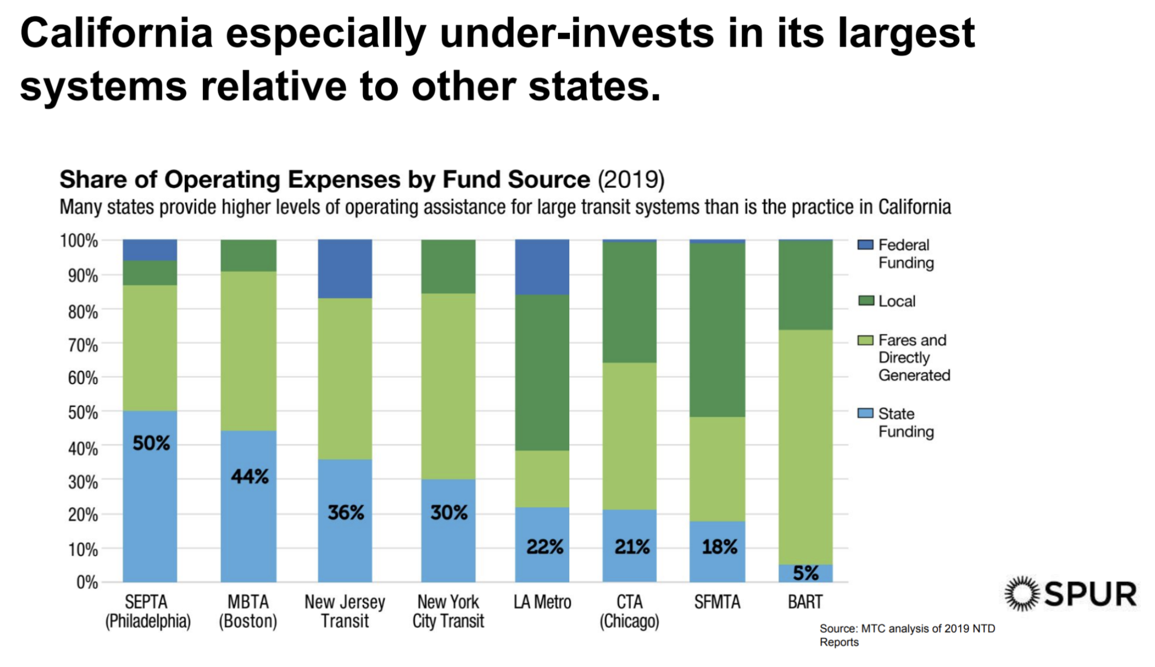 Despite data showing that California underfunds transit operations compared to other states with large transit systems, and most task force members regularly identifying operating funding as a top priority – the report did not include recommendations for operating funding at a size and time frame that would make progress on the state’s goals.