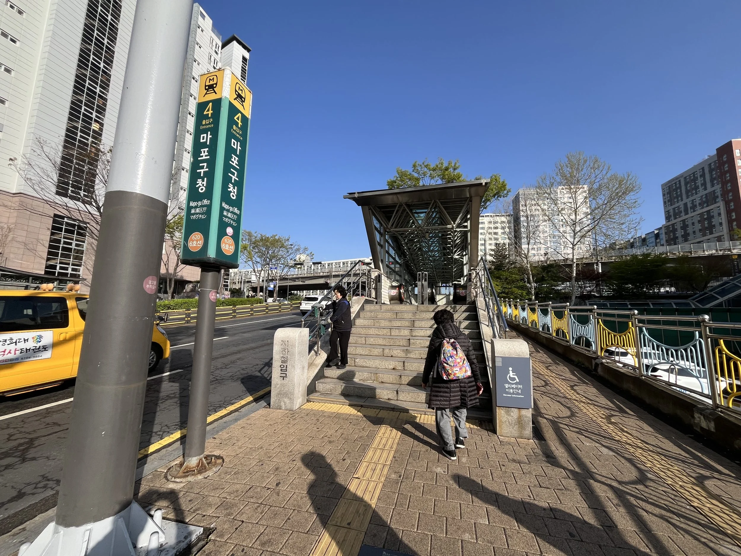Subway entrance with the standard Seoul Metro Identification sign; “4” indicates the exit, not the line number.