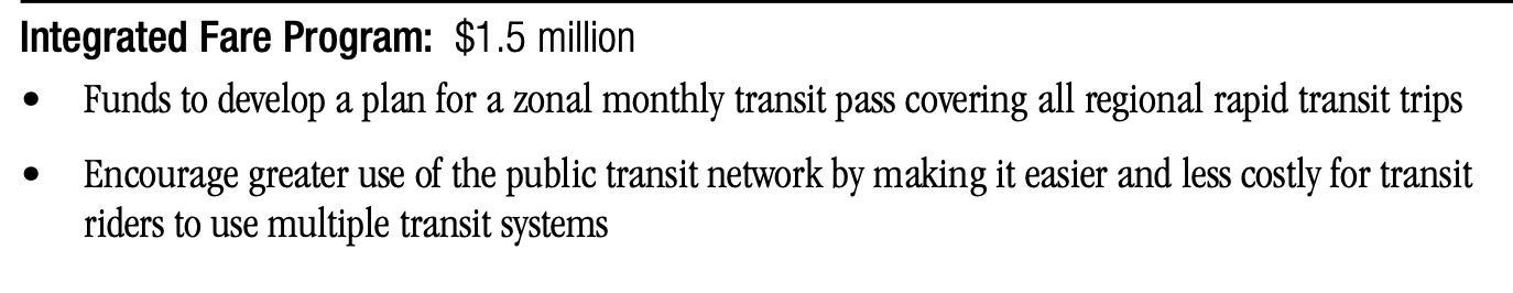 March 2, 2004: Bay Area voters approve Regional Measure 2, a bridge toll increase, which included $1.5 million in funding for an “Integrated Fare Program” to study fare integration, with a focus on making it ‘less costly for transit riders to use multiple transit systems’.